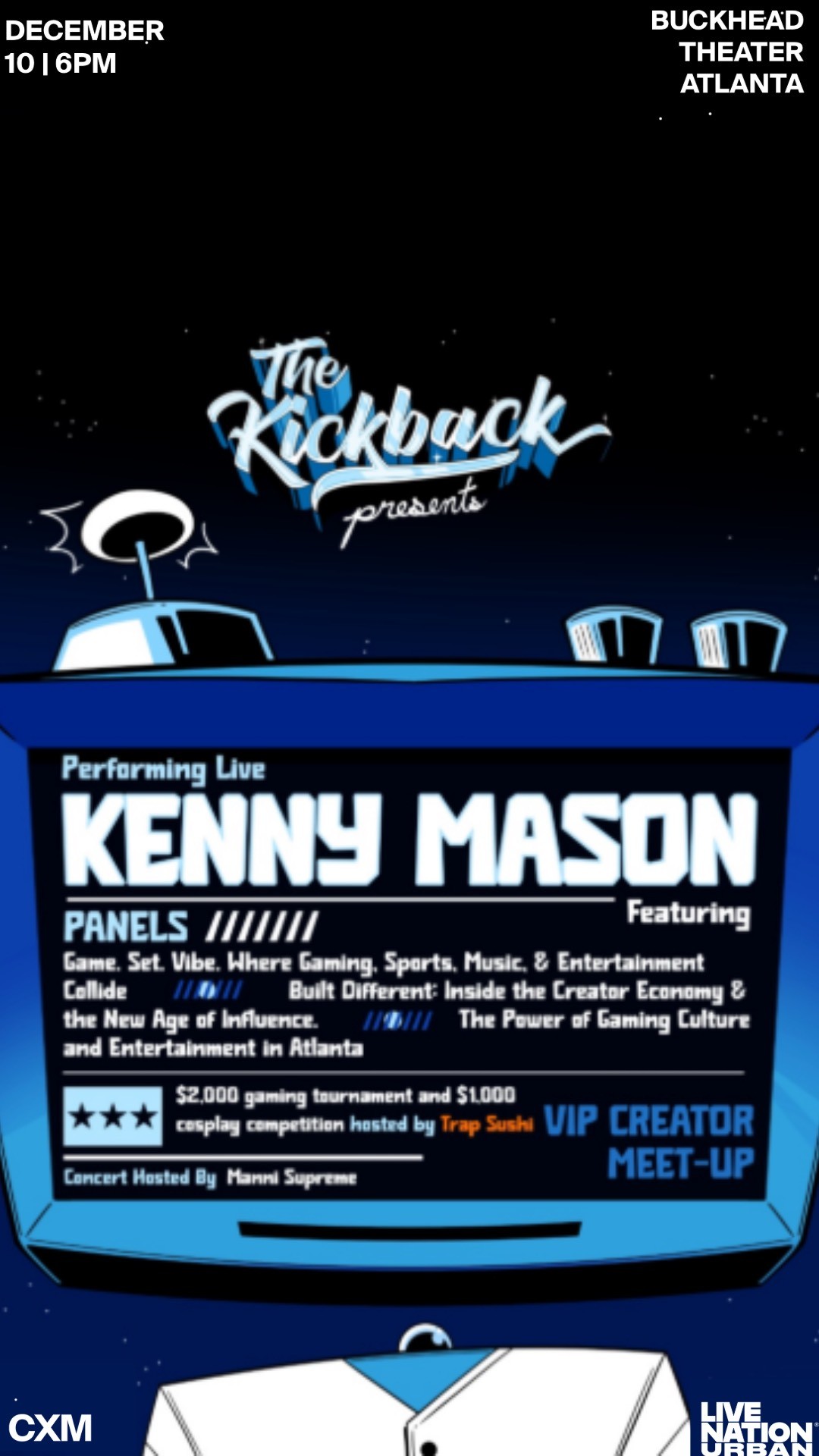 The Kickback is a live entertainment and media experience built at the intersection of gaming, music, and culture. The Kickback brings together gamers, creators, and tastemakers for high-energy moments that celebrate creativity, competition, and community. From gaming tournaments to live music performances and content collabs, it’s where the next generation of diverse talent levels up, connects, and takes center stage.